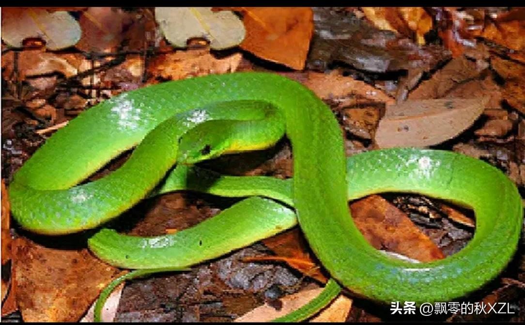 4. 翠青蛇:属于游蛇科翠青蛇属,成年蛇全长1米左右。多活动在耕作区的地面或树上,或隐居于石下,也栖息于山地阔叶林和次生林。其性格极其温柔,通常不会主动攻击。它们夜伏昼出,主要在白天活动,夜晚则在树上睡觉。翠青蛇颜值较高,很多人喜欢买来饲养,但它比较难养,有“暴毙王”之称。翠青蛇分布于中国南方,包括广东、广西、江苏、安徽、浙江、江西等地区。