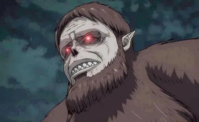 兽之巨人:外表拥有动物的特征,历代兽之巨人有铃鹿、绵羊、猿猴等外形。兽之巨人的外貌、长得像长臂猿,全身覆盖着体毛。身材高大,手臂接触到膝盖以下。,投掷能力强,轻松掰碎大石块,投掷的物体甚至能达到超音速,能轻松投掷石块炮弹甚至巨人尸块。曾经在马莱国和中东联合的战争的斯拉巴要塞战役中投掷大量炮弹,给中东联合舰队造成极大伤亡。吉克的兽之巨人是少数能够说话的巨人,可以徒手爬高墙,也能部分硬质化。也有致命缺点,就是防御弱,而且移动迟缓。