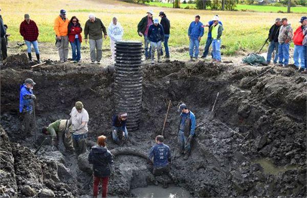一名施工队员在开挖地面时挖到了一个特别硬的东西,当他深入外开一小块土地之后,发现这个东西可不小,然后叫来人挖开了一大片。