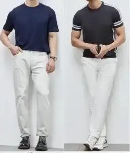T恤绝对是夏日男装的“主力军” 。基础款纯色T恤是怎么穿都不会出错的选择。像黑色、白色、灰色这些颜色,简单又百搭。黑色T恤特别显瘦,而且显得人很精神。白色T恤就给人干净、阳光的感觉,特别适合夏天。灰色则多了一些沉稳和低调。