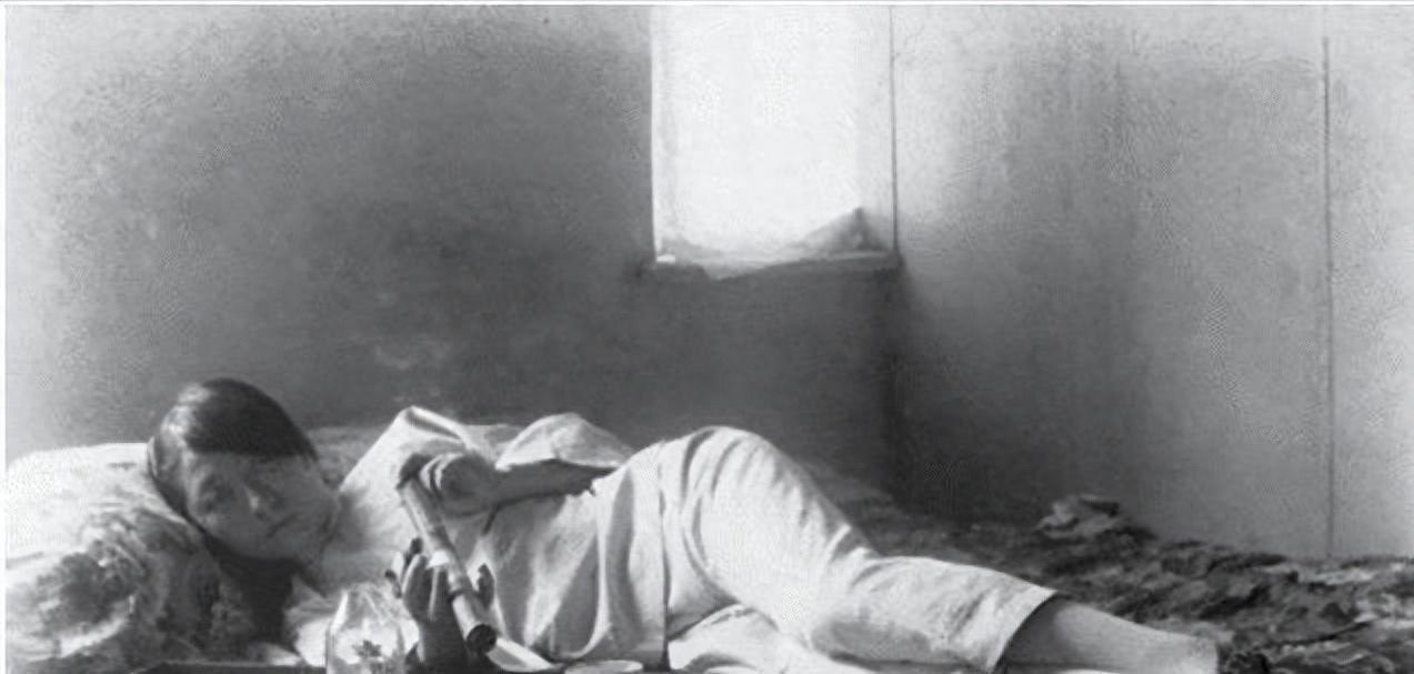 晚清老照片:青楼女子眼含妩媚,唇边含笑的躺在床上,等待客人眷顾
