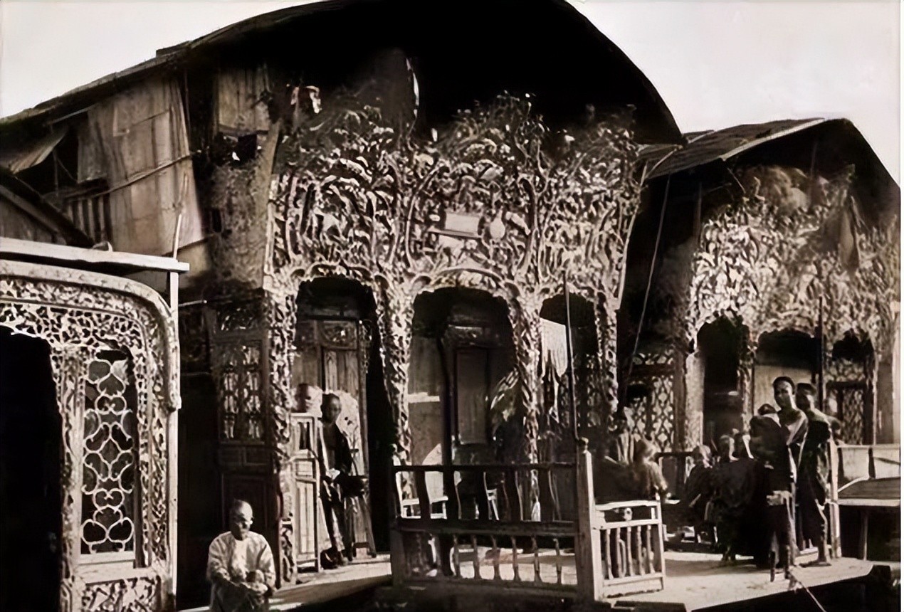 这是广州的花船,也称为青楼,娇艳欲滴,灯火辉煌。花船上的妓女身着华美的服饰,妆容艳丽,以歌舞娱客,展现着一种独特的风情。