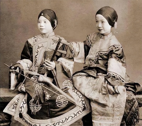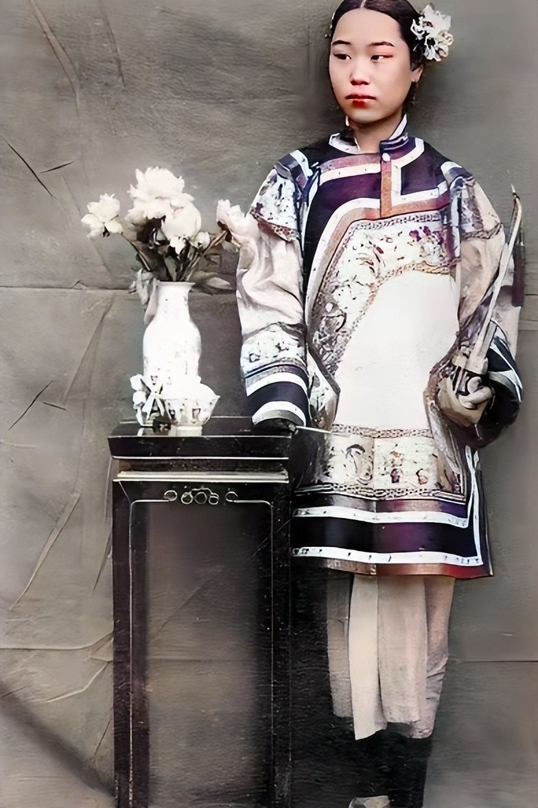 女人的穿衣打扮在清末时期也十分时尚,装束华丽,款式独特。