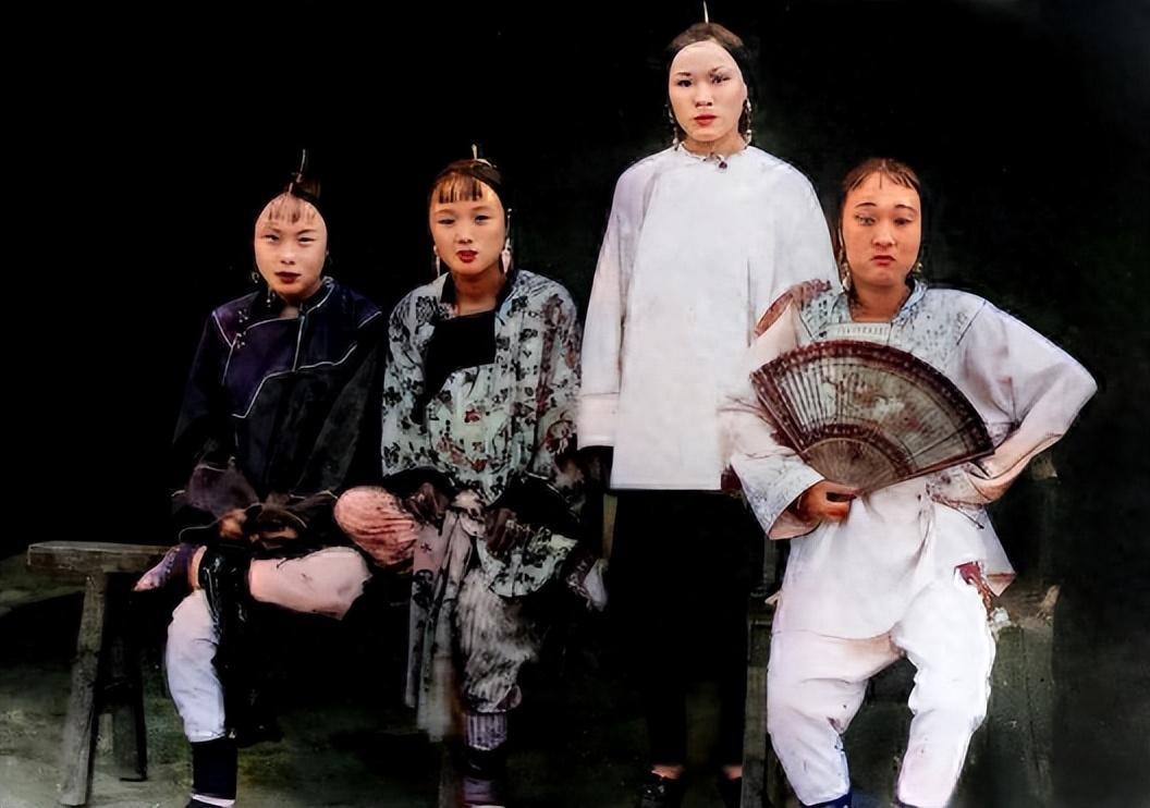女子是晚清时期北京八大胡同有名的妓女,妆容艳丽,妖娆妩媚。