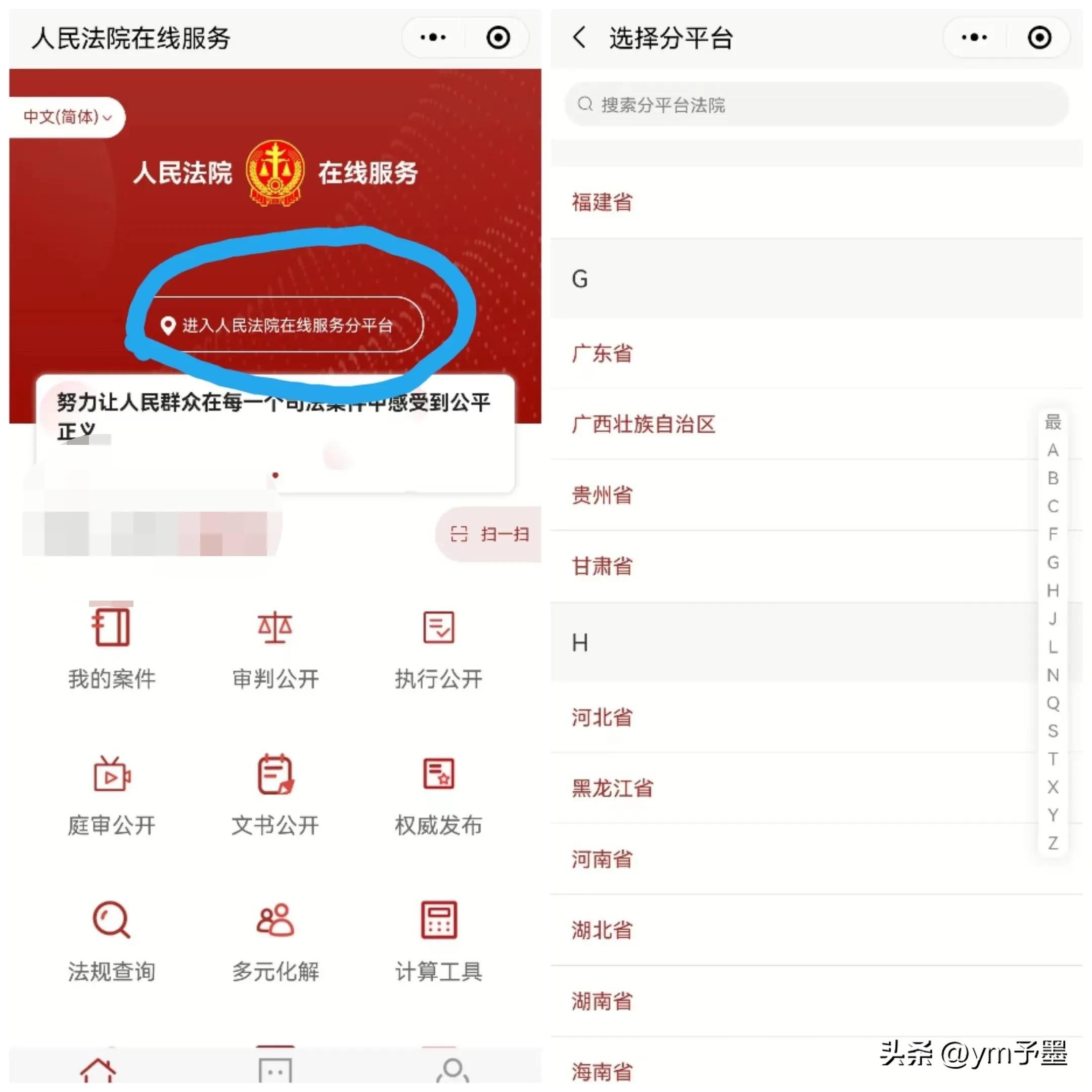 微信公众号搜索:人民法院在线服务XX(省份)第一次记得注册认证哦