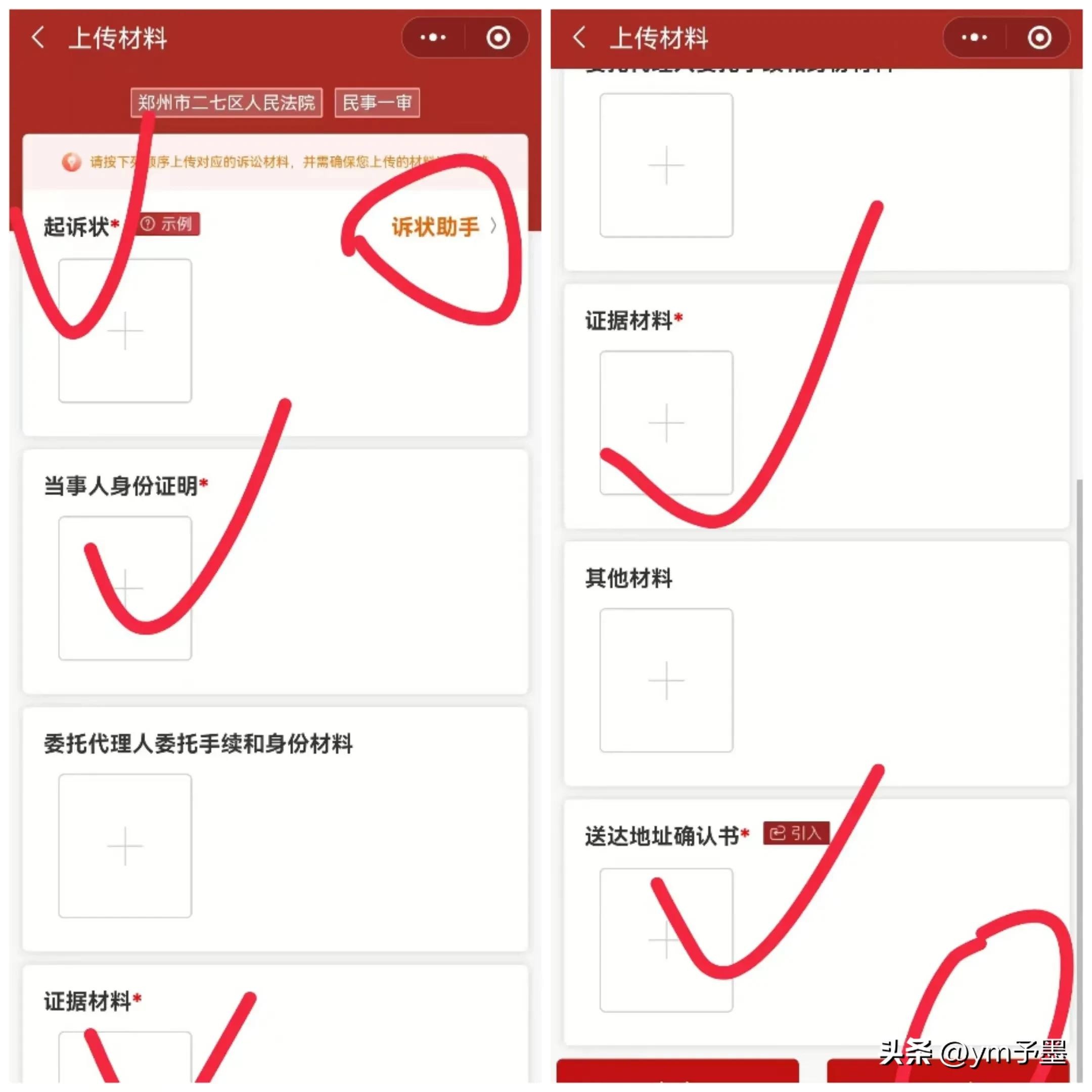 上传起诉状——当事人信息证明——证据材料 ——送达地址确认书等