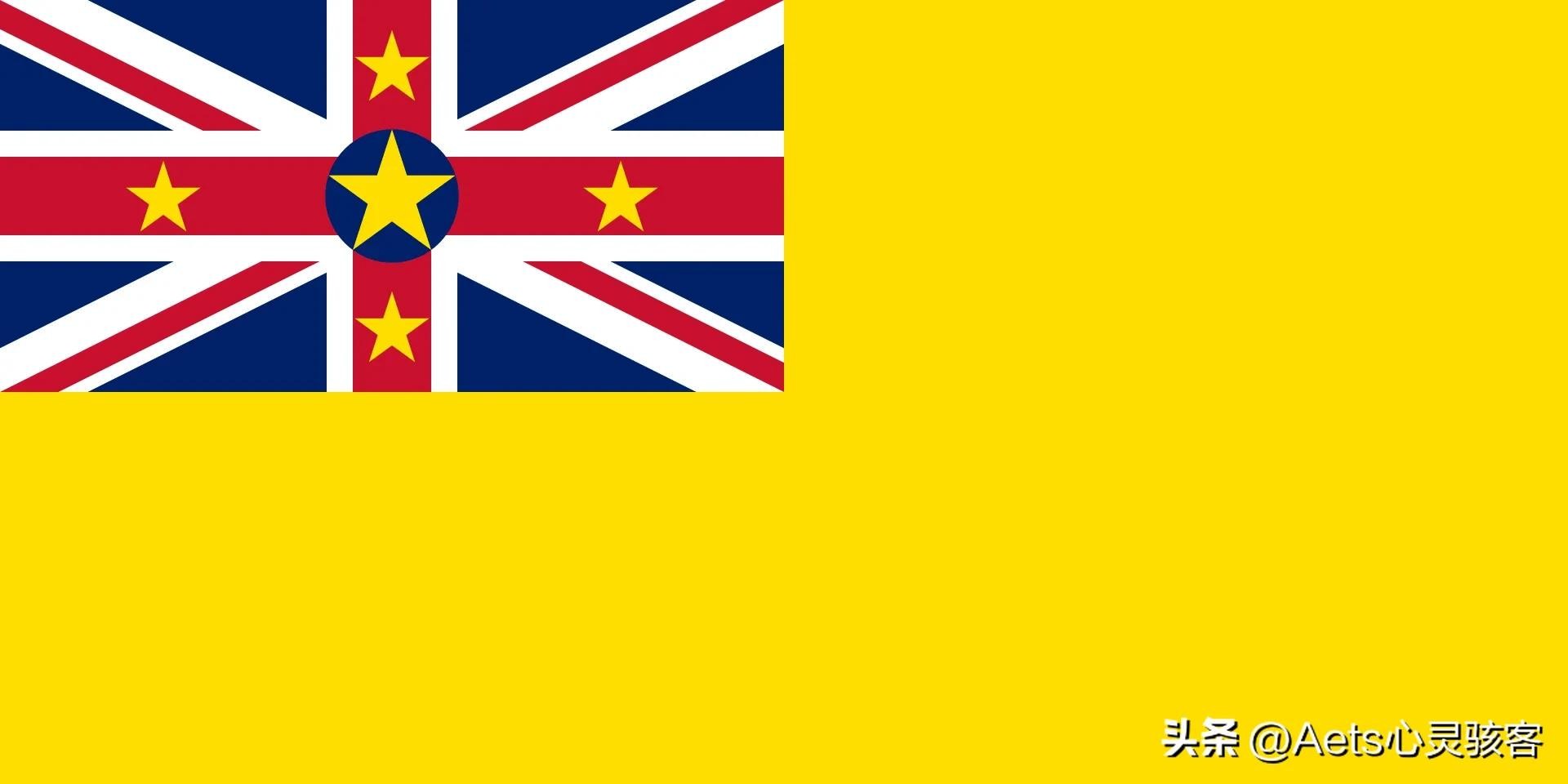 纽埃的国旗由黄色和英国国旗组成,启用于1975年。其中黄色部分象征着纽埃和新西兰的友谊,左上角英国图案代表着自己是英联邦的成员。