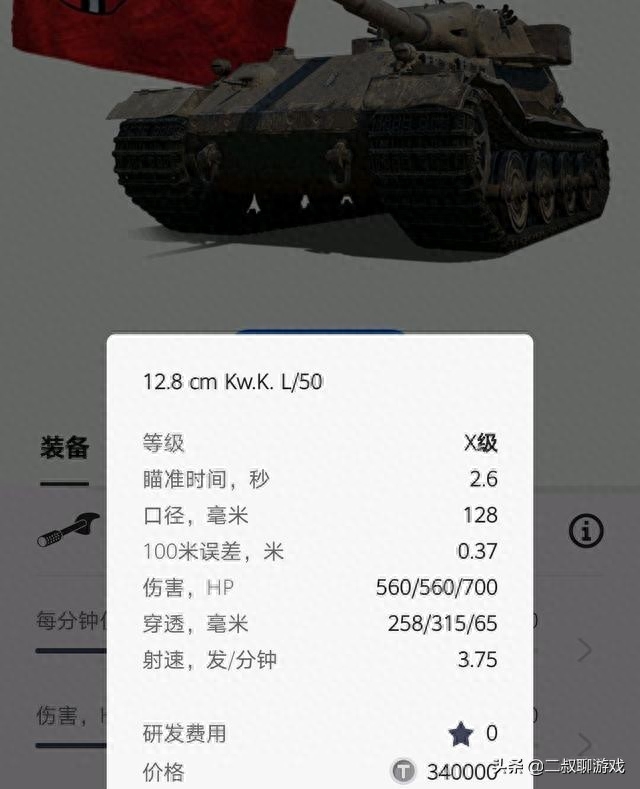 火炮数据除了金币弹穿深以外几乎与E100一模一样(资本的力量啊,E100金币弹穿深才334,氪金车就是区别对待,同炮不同命哦)。