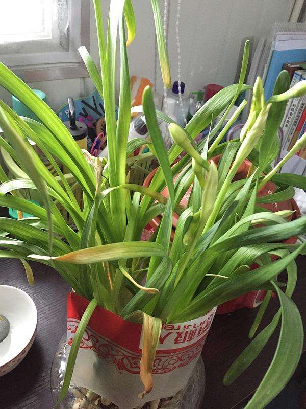 当水仙花的叶子长得过长时,叶片容易打折,或者水分养分不能及时输送给叶尖,导致叶尖慢慢开始发黄。