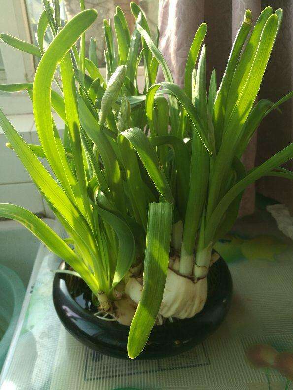 水仙花从叶子开始生长到花朵开败,都要养在光照充足的地方,每天光照时间不少于4小时。要是光照不足,水仙花叶子就容易徒长,变得又窄又长。