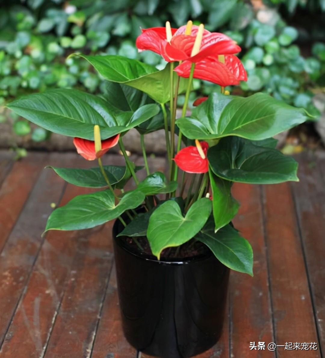 说到适合在阳台养护的花卉,那当然是不能少了红掌,这种花卉的叶片油亮,花朵鲜红,非常有光泽感,一年四季都是可以不断开花的。