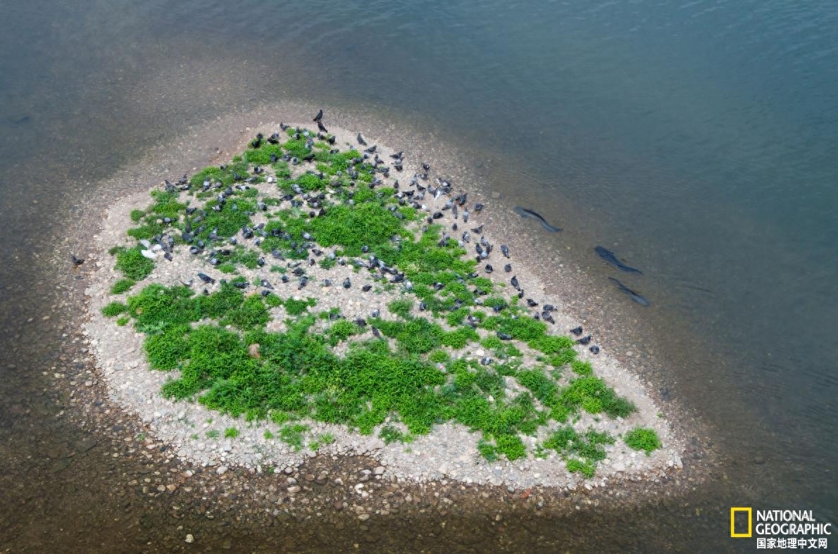 六须鲶鱼在塔恩河中的一个小岛旁巡游,准备抓住毫无防备的鸽子。摄影: REMI MASSON / NPL / MINDEN PICTURES