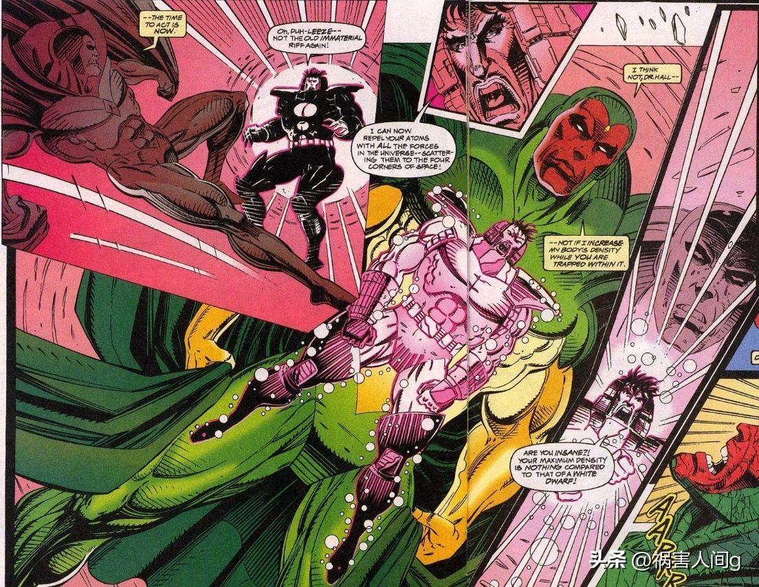 在1995年漫画《复仇者:不插电》#2中,幻视用自己无形的机器人身体与万力王合并,然后开始增加密度,想要使万力王的身体自行崩溃。