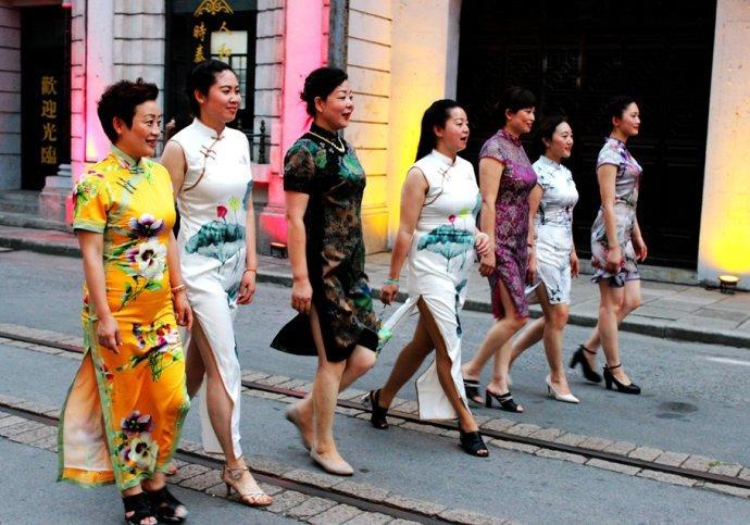 一路走来,都是婀娜多姿的旗袍美女。