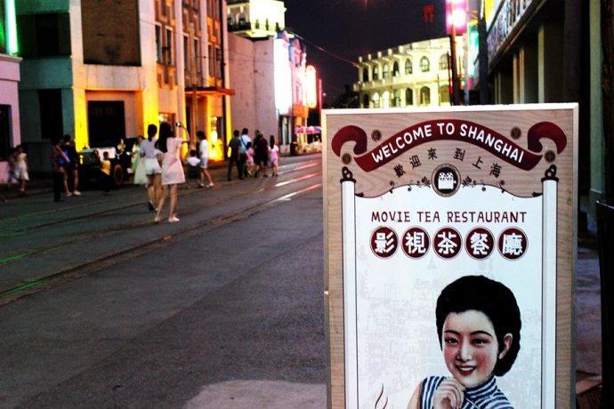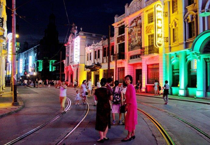 整条街上络绎不绝地闪动着各种百年老店的霓虹招牌,夜上海的韵味充满着整条街道。