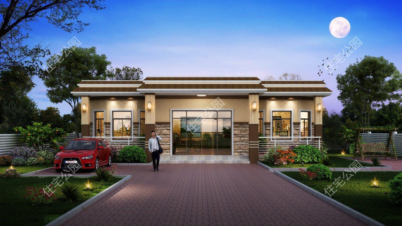 这套一层欧式户型外观非常时尚浪漫,主体造价差不多20万就能搞定,如果经济条件允许,可以用真石漆、文化石装饰,搭配陶瓷屋面瓦,虽然只有一层同样非常“洋气”。