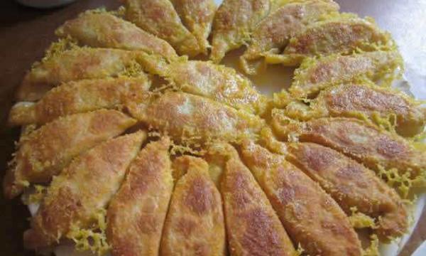 辽宁小吃,为义县回民人胡海潮所创,采用煎贴法工艺制成。初时制作用吊炉土法制作,现改用烤箱,能制作十几种,风格各异。