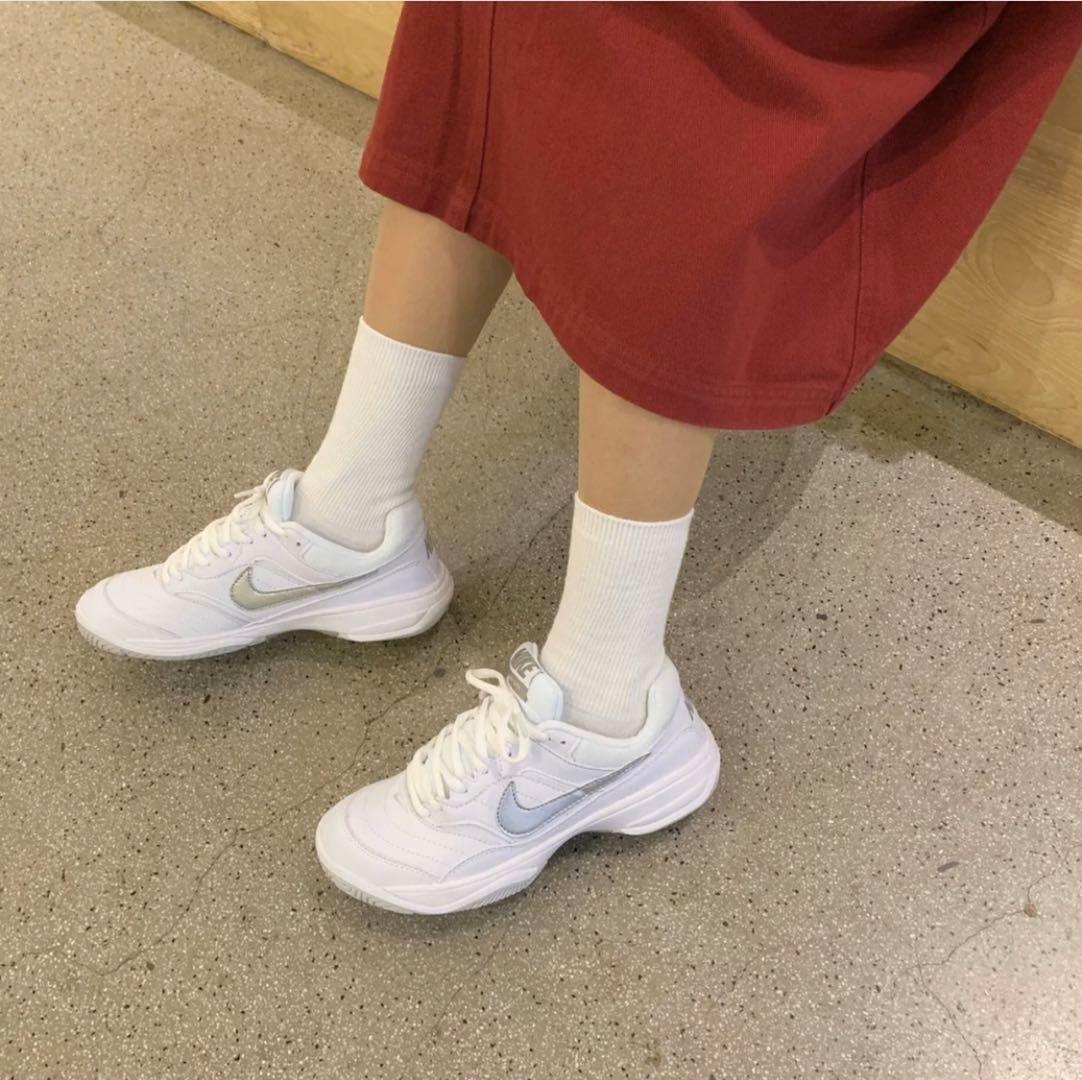 耐克网球鞋的基础款,突然火起来的冷门耐克!鞋身轻巧方便,皮质鞋面配上复古的银色勾子,亮点就在于统统都逃不过白色耐看好搭衣服的定律哈哈~