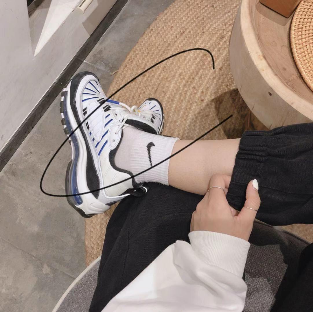 这绝对是耐克的黑马!配色超级多,但我唯独看中了这个黑白蓝配色,好看又百搭!鞋头部分以及鞋侧面处的小logo真的超耐看,脚小的姐妹们,绝对是福音,上脚太好看了!