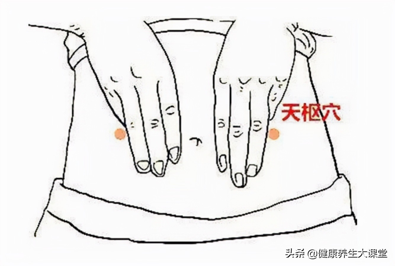 刮痧位置:取穴时,可采用仰卧的姿势,天枢穴位于人体中腹部,肚脐两侧两寸处。
