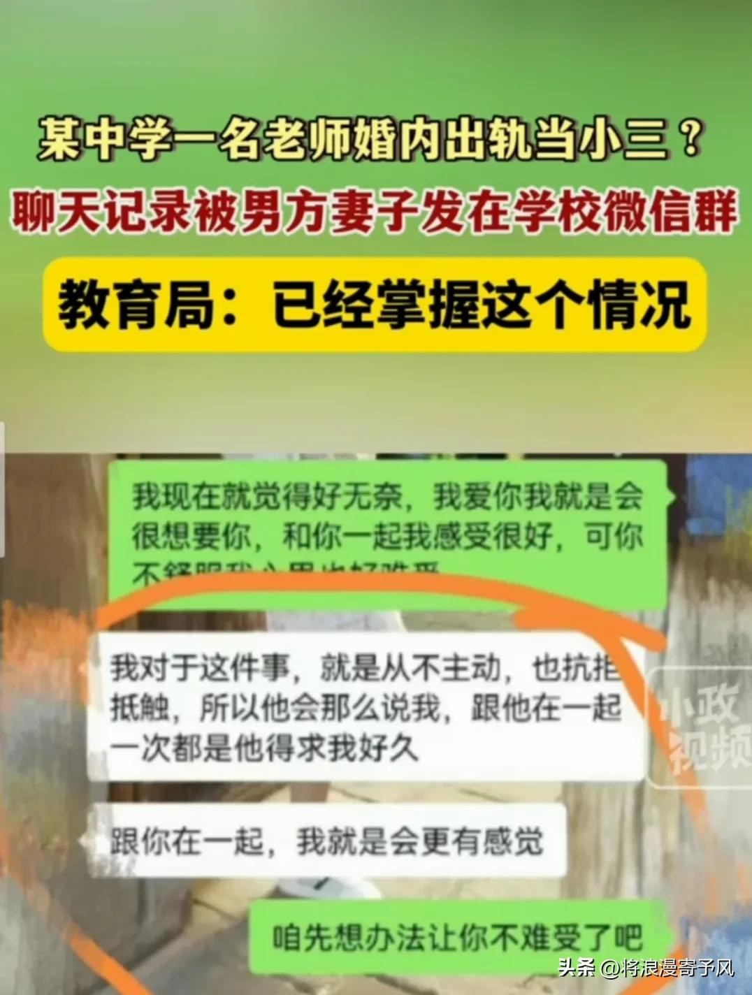 女教师出轨男子!露骨聊天记录曝光!网友:辣眼睛!教育局回应!