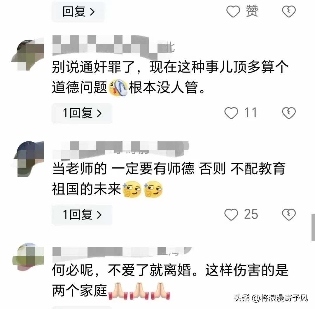 老师不仅要传授知识,更要在品德和行为上成为学生的楷模,这种出轨行为很可能会影响学生的三观,这不是误人子弟吗。