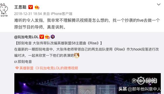 王思聪在微博中毫不留情面的直接评价diss大张伟:难听的令人发指,说是非常不理解腾讯视频是怎么想的,找一个抄袭的five去做原创节目的导师,真是讽刺。