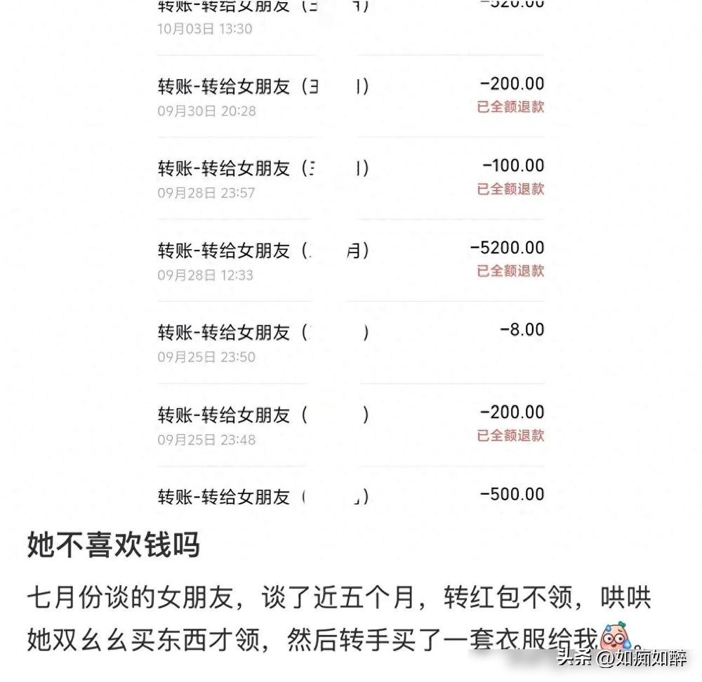 一位男性网友在社交平台上分享了他的经历,困惑地问道:“为什么我的女朋友不愿意接受我的转账?”这一问题引起了广泛讨论,尤其是来自女性网友的热烈回应。