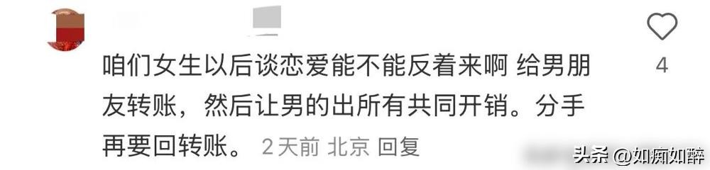 这位女性网友的观点代表了一种普遍的情感趋势:人们希望在感情中保持某种纯粹和独立,避免因为金钱而产生误解或矛盾。
