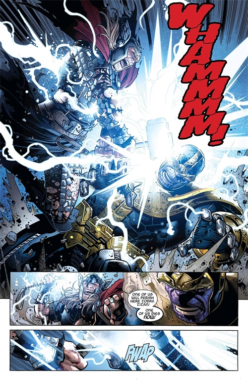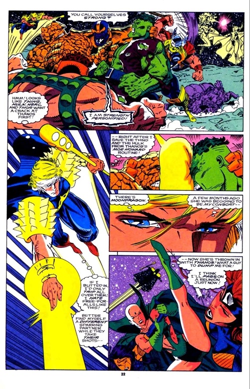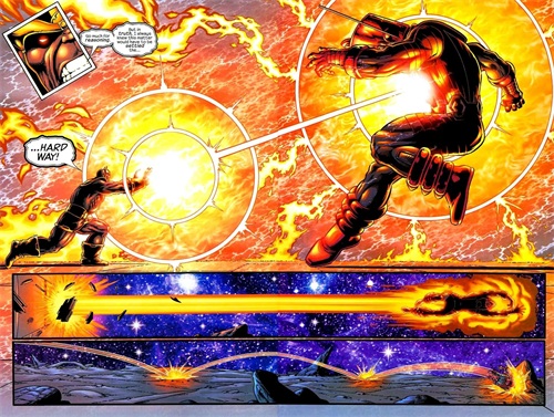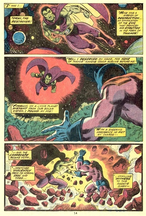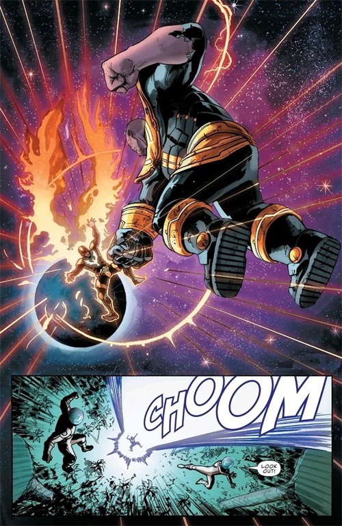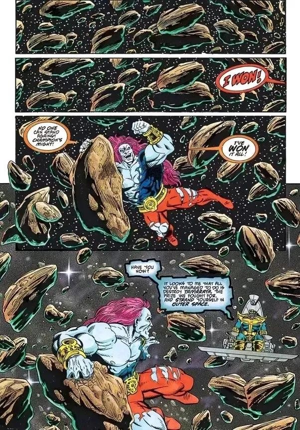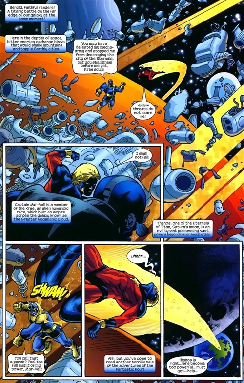 一拳将惊奇队长Mar-vell从土星轰飞至地球。