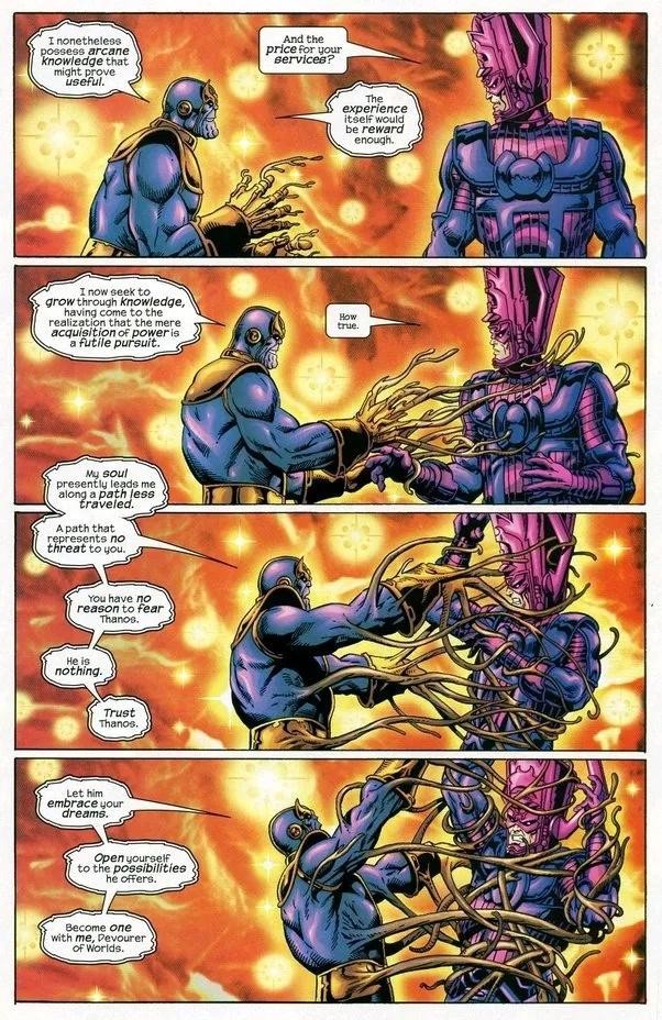 与银河系最强大心灵感应者之一的月龙进行心灵对决,灭霸取得胜利。