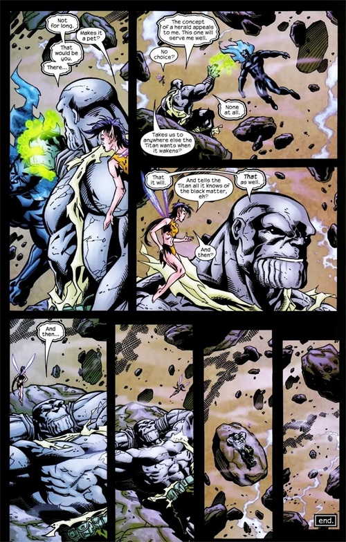 灭霸击败并精神控制住堕落者成为他的仆人。