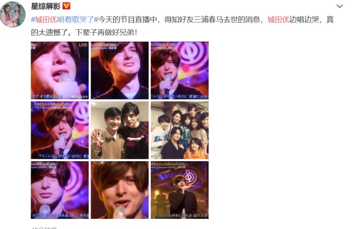 巧合的是,三浦春马的好友城田优在几小时后的直播节目中,直接得知三浦春马去世的消息,现场压抑不住情绪,一边唱着歌一边就哭了。