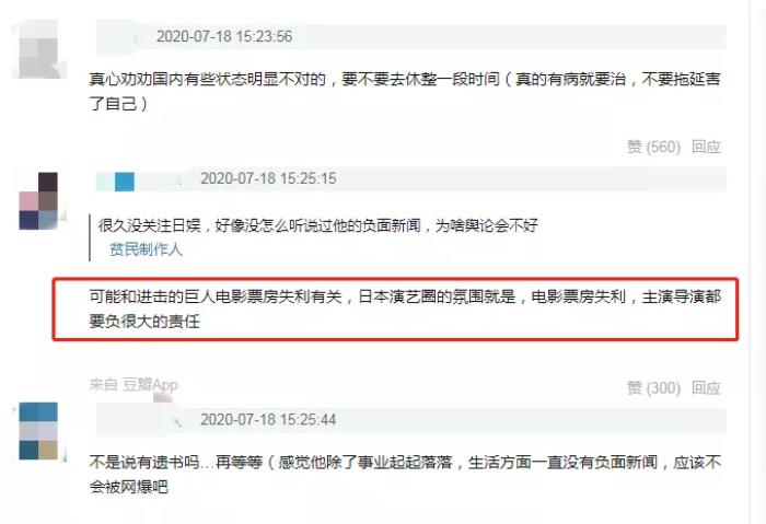 不过三浦春马基本没有什么负面相关,个人形象与口碑一直不错,有网友认为可能跟电影《进击的巨人》票房失利有关,日本演艺圈的氛围是,电影票房失利,主演和导演都要付很大责任,三浦春马因此承受了很大的压力。