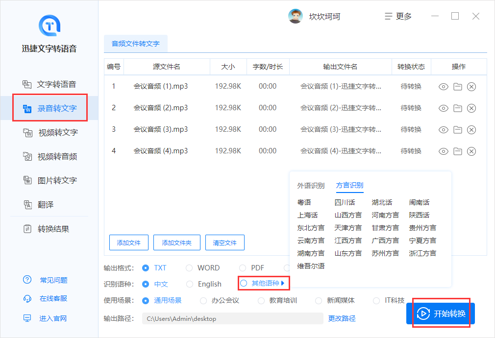 如果想将已经录制的音频转写成文字,可以使用【迅捷文字转语音】软件,将录音文件转写成文字,支持导入多个文件进行批量转换,转换效率超高,2小时的会议录音转写成文字只需要5分钟。