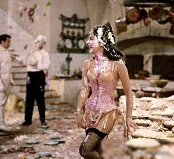 奶油涂满身体的女郎,她的笑容中似乎隐藏着无尽的无奈与苦涩。或许,她是被逼无奈而走上这条不归路,成为了那个时代的牺牲品。这种情境令人心生悲凉,不禁为她的遭遇感到深深的心痛与愤慨。