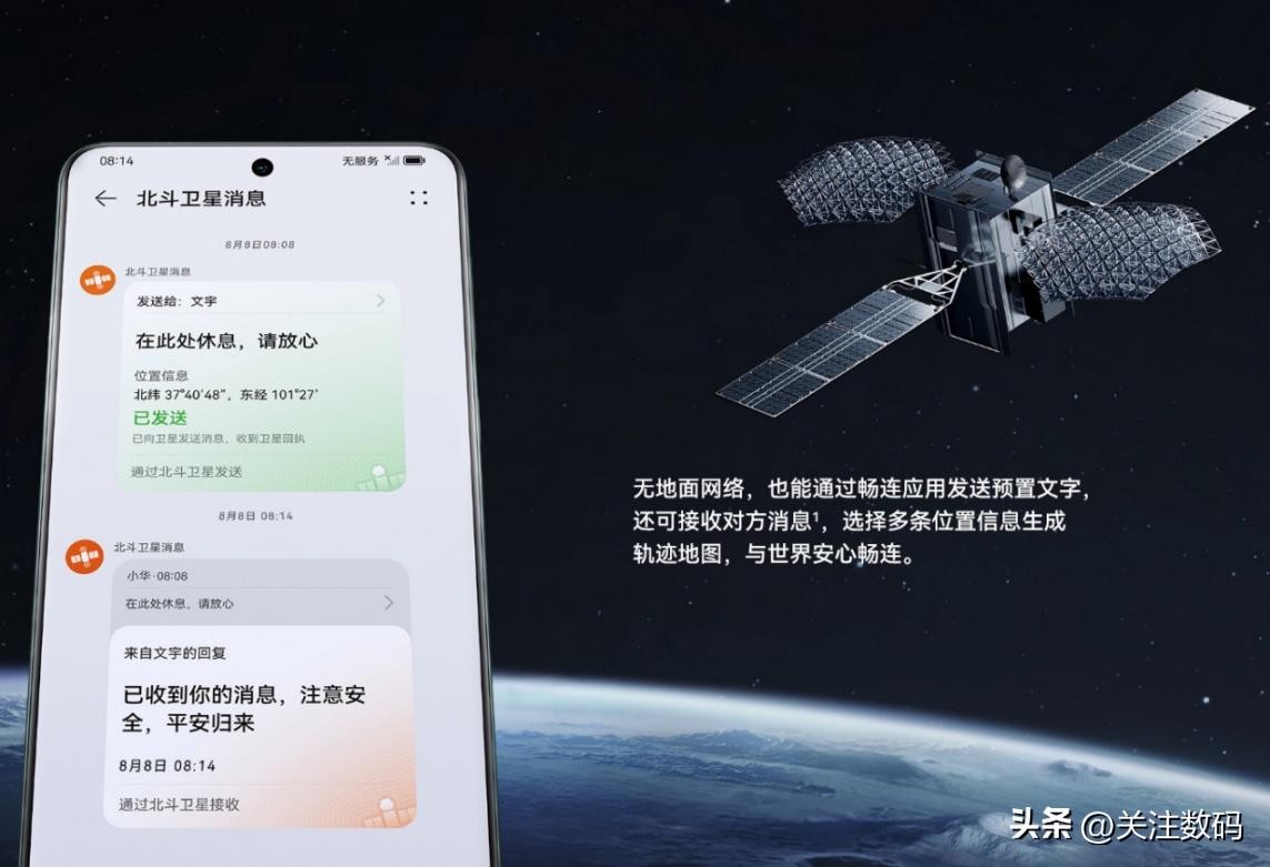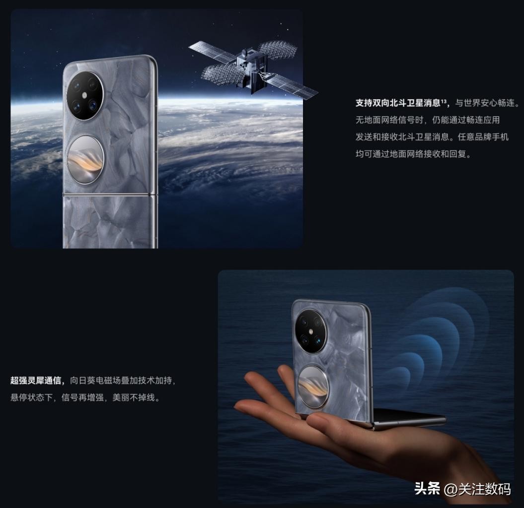华为Pocket 2支持双向北斗卫星消息,无地面网络信号时,仍能通过畅连应用发送和接收北斗卫星消息。任意品牌手机均可通过地面网络接收和回复。
