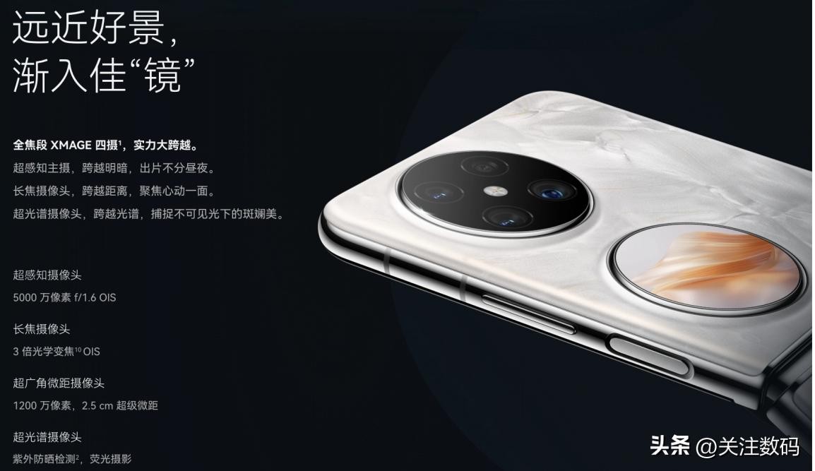华为Pocket 2采用5000万像素超感知摄像头,800万像素长焦摄像头,支持3倍光学变焦,支持OIS;1200万像素超广角微距摄像头;200万像素超光谱摄像头,紫外防晒检测,荧光摄影。1070万像素超广角自拍摄像头。