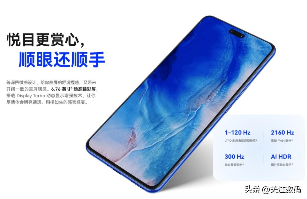 华为Nova12Pro背部采用落樱图案,主打12号色,眼目之蓝,对于时尚爱美女士拿捏的非常到位。华为Nova12Pro搭载6.76英寸等深四微曲OLED屏。