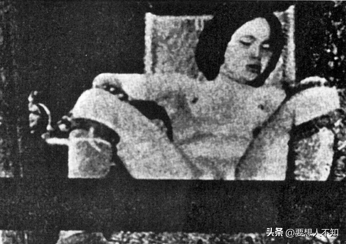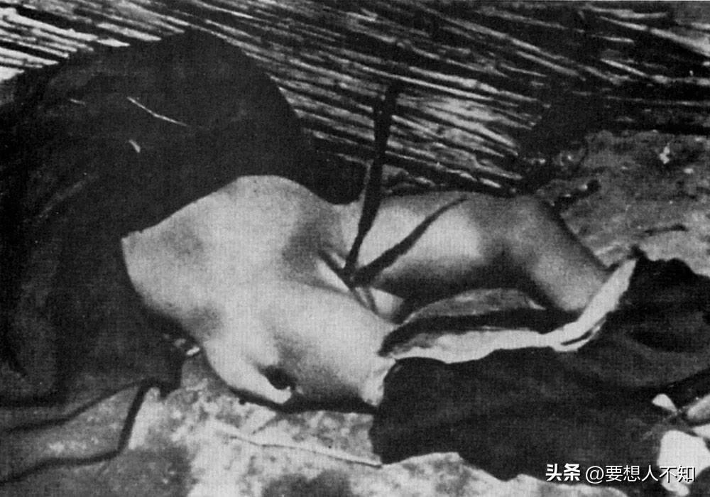 这张照片很泪目,她赤裸着,双腿张开被绑在椅子上。