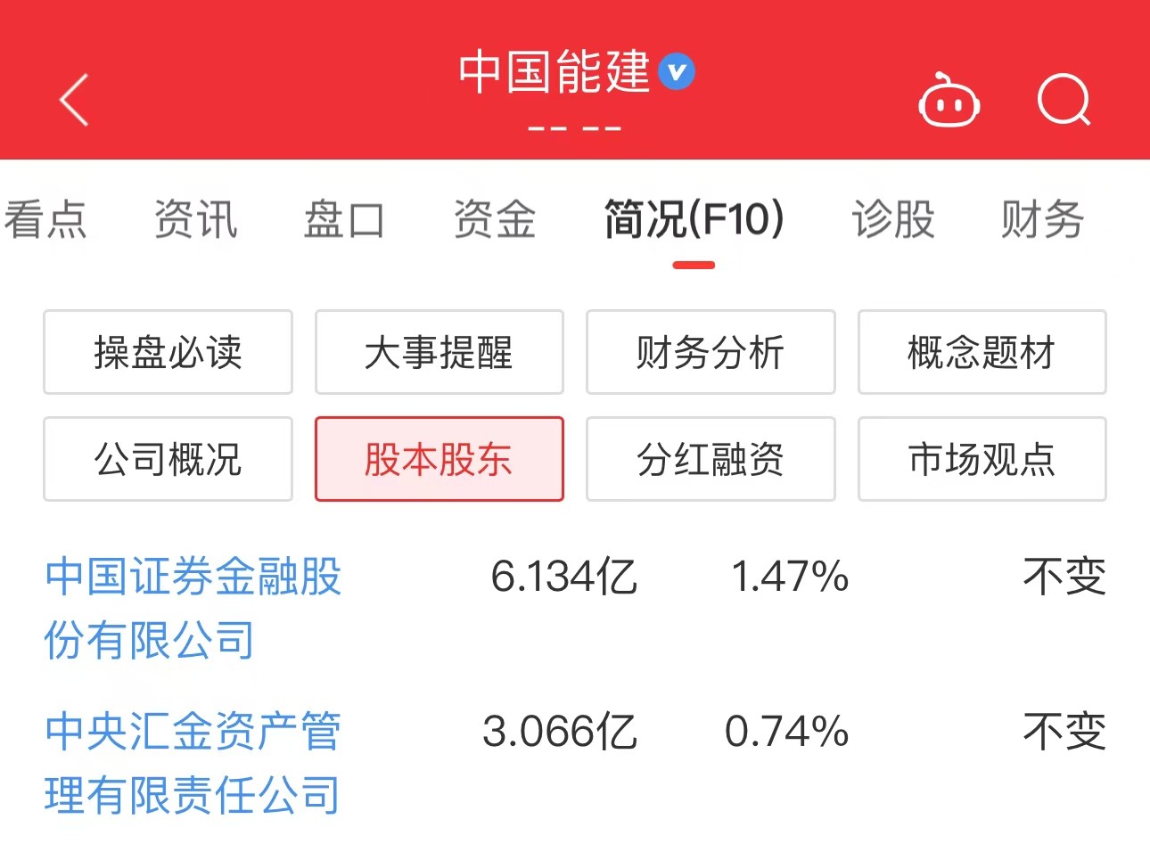 国家队持仓方面,中国能建被中央汇金、证金公司分别持股3.066 亿、6.134亿。