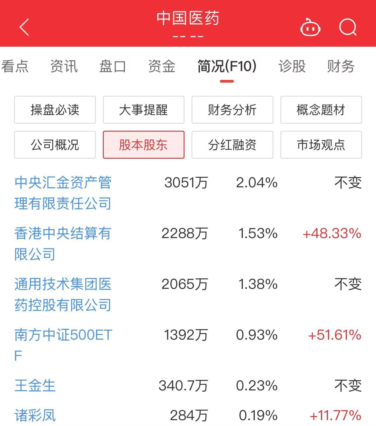 国家队持仓方面,中央汇金持有3051万股,占比2.04%。