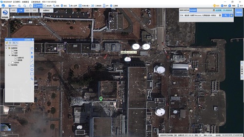 ▲地图源使用BIGEMAP的历史影像,看福岛2011年地震后的卫星影像,时间为2011/3/16