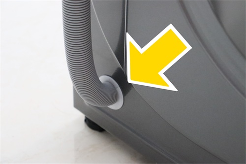 找到洗衣机的排水管,顺着排水管往回找,找到排水管和洗衣机的连接处▽