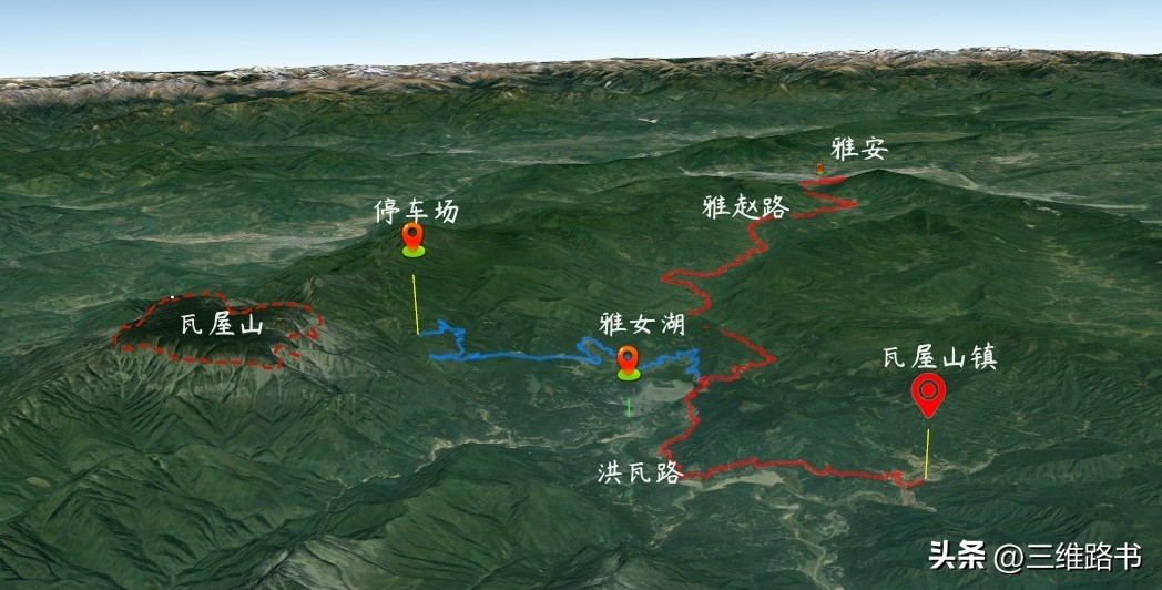 瓦屋山脚下有名声在外的雅女湖,这里原来是一个水库,是在瓦屋山水电站建成后形成的一个高原湖泊,湖平如镜,雅安有三绝,其中一绝称雅女,这个湖泊就像雅女一样温婉尔雅,所以人们又将瓦屋山水库称为雅女湖。