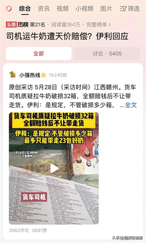 #司机运牛奶遭天价赔偿?伊利回应#