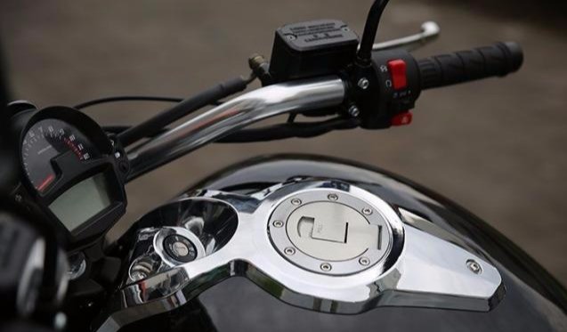 整车的悬挂上,雷神500前置不可调正置减震,后置多段可调单边减震。由于是一台太子巡航车,所以整个减震也是设计的较为舒适,适合长途骑行。但是作为一台太子车,雷神500并没有采用传统印象中太子车高手把的设定,虽然采用的也是美式巡航车中常用的一体式车把,但是高矮适中,骑行姿势更加舒适。