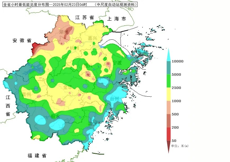除了雨(雪),天气静稳,湿度大,雾气滋生,霾也再次现身,早晨浙北地区出现大雾,局部能见度不足200米;09时,杭州、湖州、嘉兴、绍兴出现轻度污染。