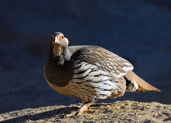 天山雪鸡是地球上生长在海拔最高的鸡类,一般分布在海拔3000耀6000米,直至雪线以上,我国的新疆、青海、西藏、四川和甘肃等地均有雪鸡分布。天山雪鸡又名雪鸡、藏雪鸡,藏语称其为"孔姆",为鸟形目雉科雪鸡属鹌类,形似鹌鹑,体大如鸡,是鹑类中体型最大的飞禽。它能飞善奔,行动敏捷。