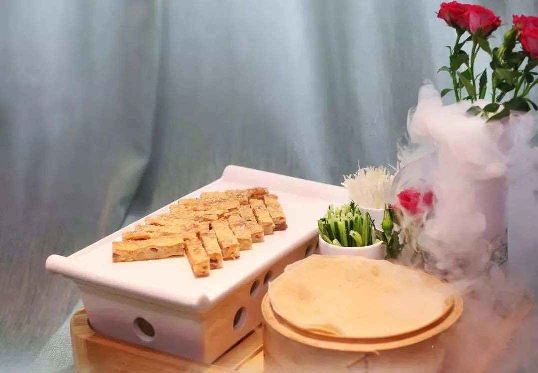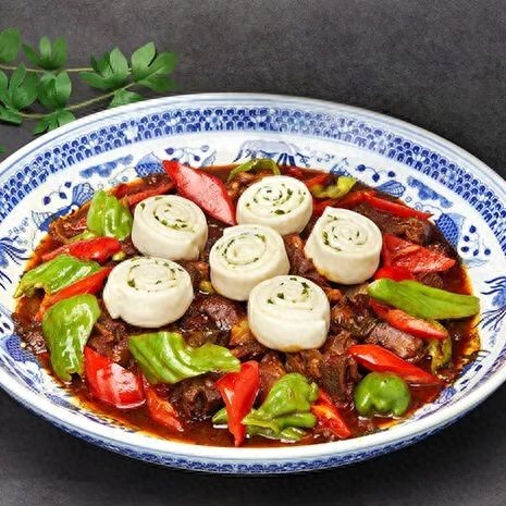 西安人爱吃腊汁肉夹馍,此菜将绞碎的猪肉加酱料一炒,肉香酱香,再自制出圆形蒸小饼,炸得酥脆脆的,加入香喷喷的酱肉和绿油油的生菜,喷香可口。
